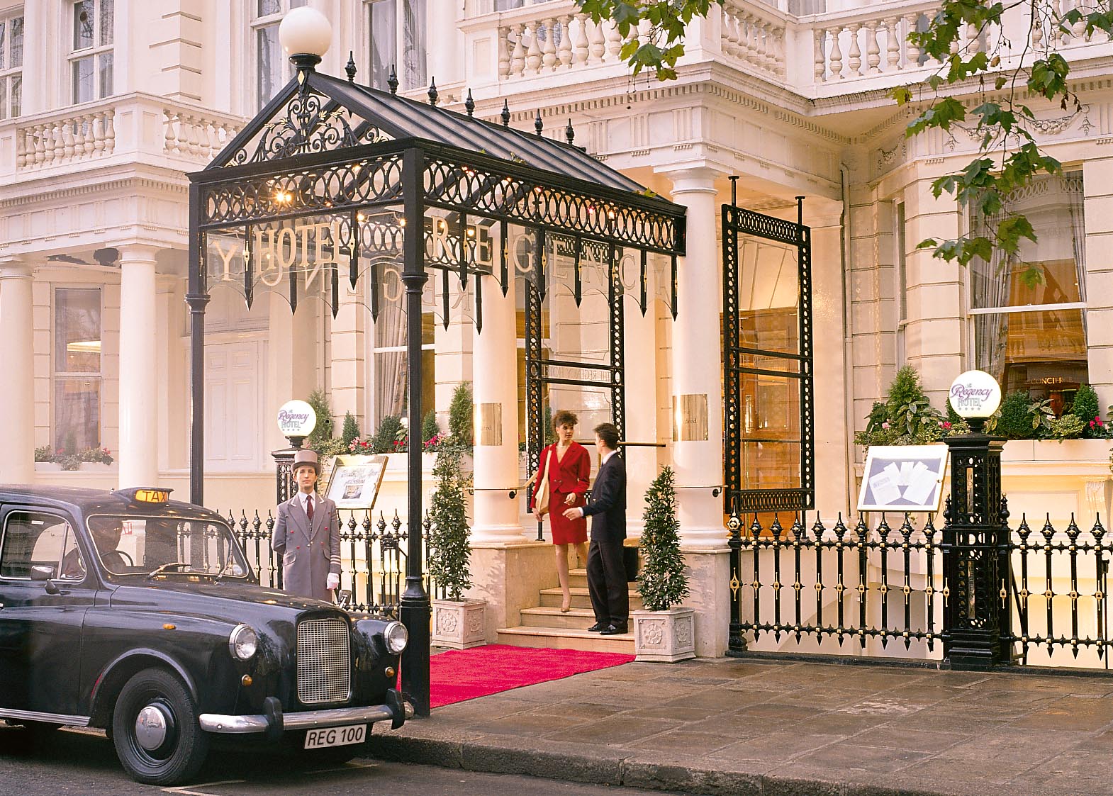 Fast vi åkte inte taxi och ingen i hög hatt kom och öppnade dörren åt oss. Jag hade ingen röd dräkt på mig, utan hasade fram i mina vanliga gamla kläder och någon karl som rusade fram för att stifta bekantskap med mig såg jag inte till… Ack, varför kan inte livet vara som på en hemsida? Men jag måste säga att hotellet är finfint. En annan har bara bott på skrutthotell i London tidigare och detta är riktigt normalt och bra!