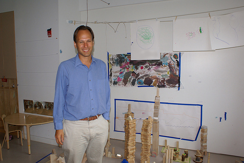 Brad berättade om verksamheten som riktar sig till yngre barn, men som kommer byggas ut i takt med att barnen blir äldre och sedan omfatta det som har sin motsvarighet i vår grundskola. Han berättade om hur skolan startats av The Blue Man Group. Ni vet de där blåa människorna som bankar på rör och sånt.