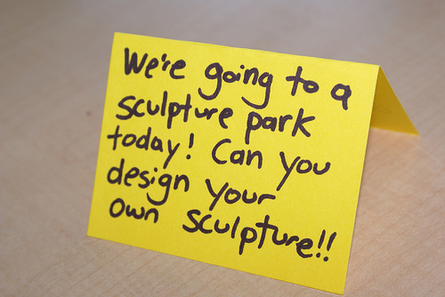 Sedan ger de sig ut på en Upptäcka-staden-vandring, men innan de går ber Brad barnen tala om för honom om skulpturerna har vuxit något sedan sist och barnen lovar att ta reda på det.